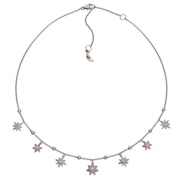 Explore the intricate beauty of an 18kt rose and white gold necklace, adorned with a meticulous pavé arrangement featuring stunning brilliant white and Argyle pink diamonds.