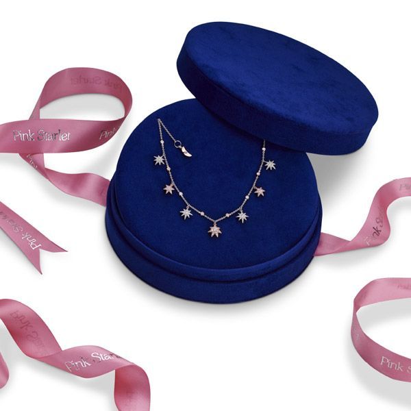 The collection includes The Pink Starlet Earrings, The Pink Starlet Bracelet, and the Pink Starlet Necklace.