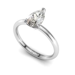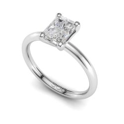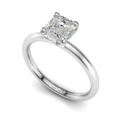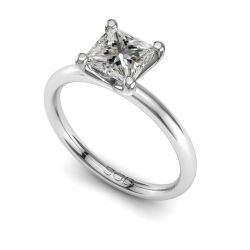 This classic solitaire engagement ring features a stunning oval cut diamond, set on a sleek, softly rounded square band that blends timeless elegance with modern comfort.