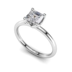Crafted in 18 karat gold or platinum, this engagement ring showcases a round brilliant cut diamond in an elegant four-claw tulip setting.