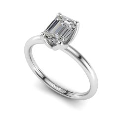 Crafted in 18 karat gold or platinum, this engagement ring showcases a square emerald cut diamond in an elegant four-claw tulip setting.
